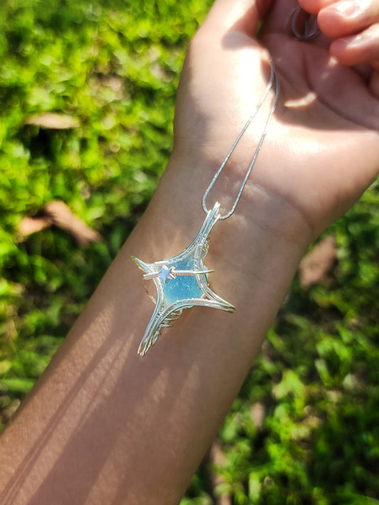 Blue Star & Moon Crystal Pendant
