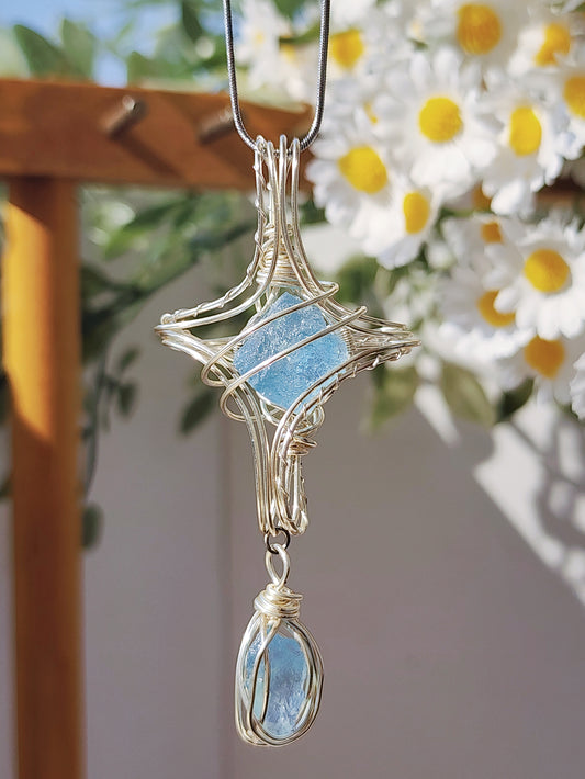 Cosmic Duo|Blue Star & Moon Crystal Pendant