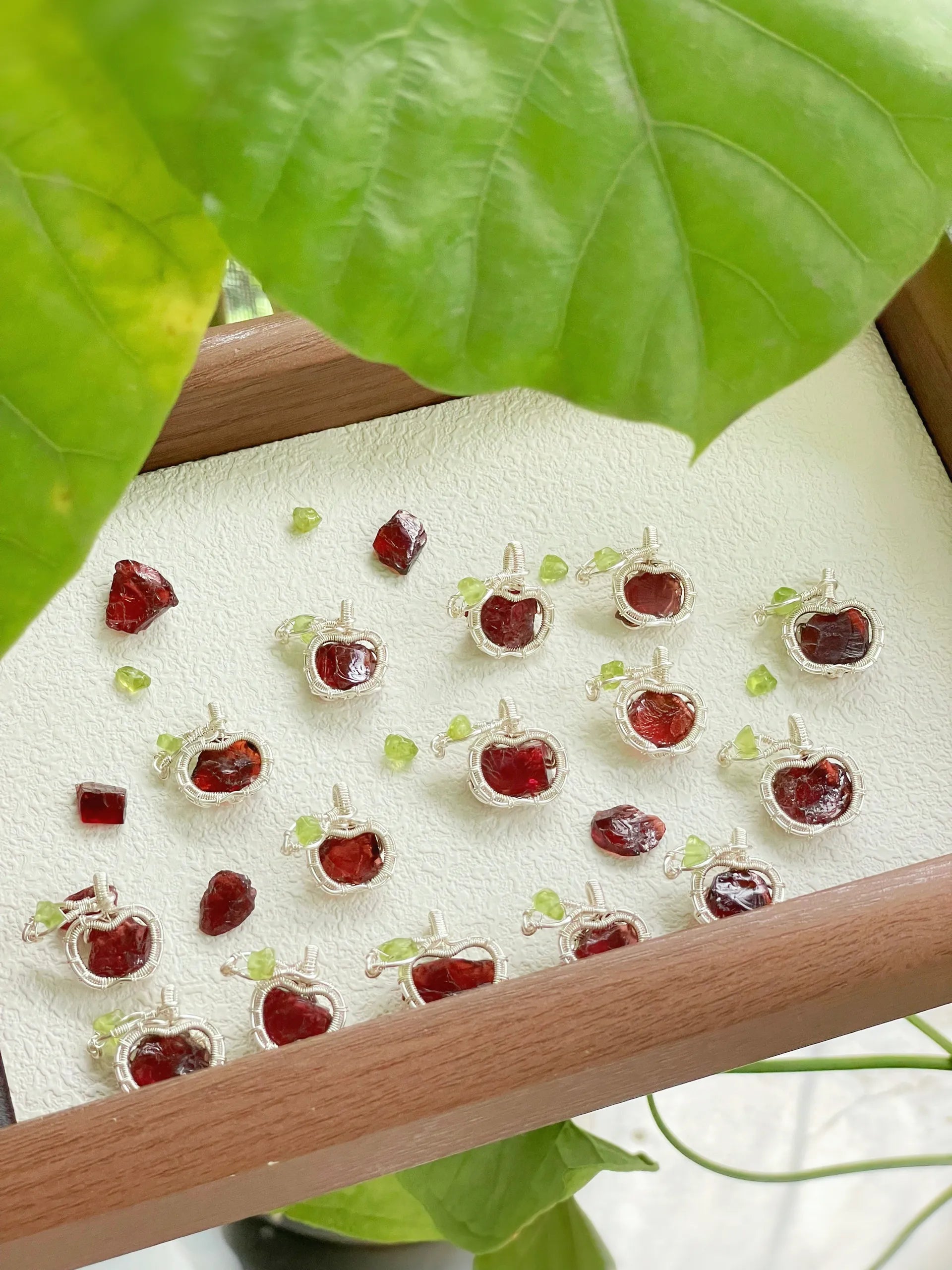 ✽Materials: red glass, Green Glass, Peridot, Color Retaining Copper Wire