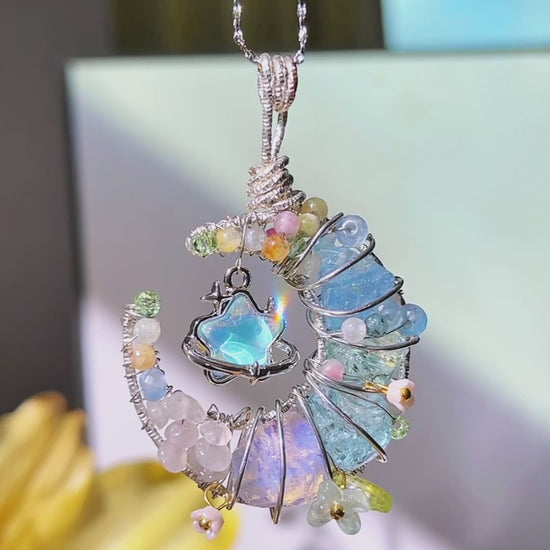 Cosmic Duo|Blue Star & Moon Crystal Pendant