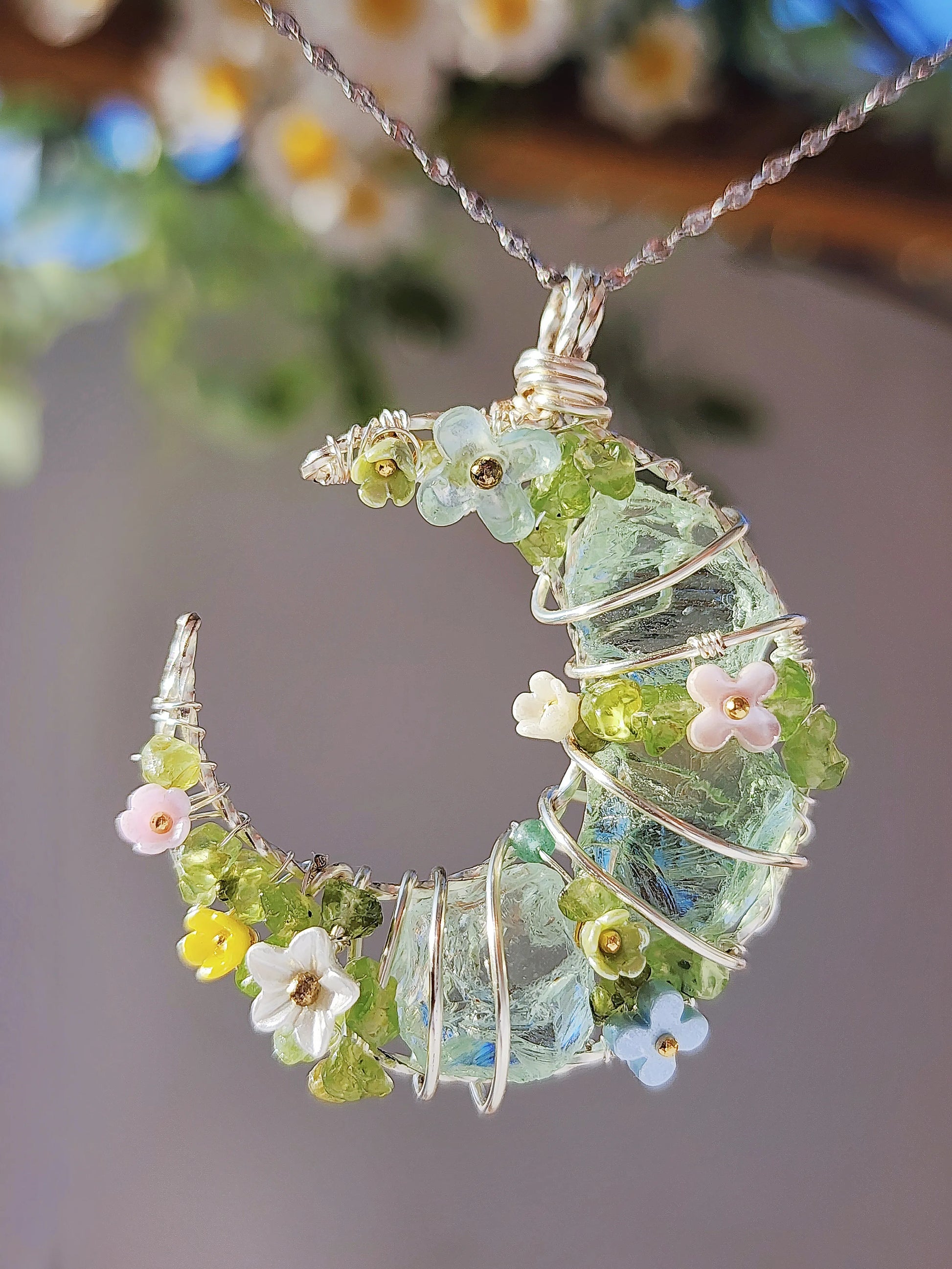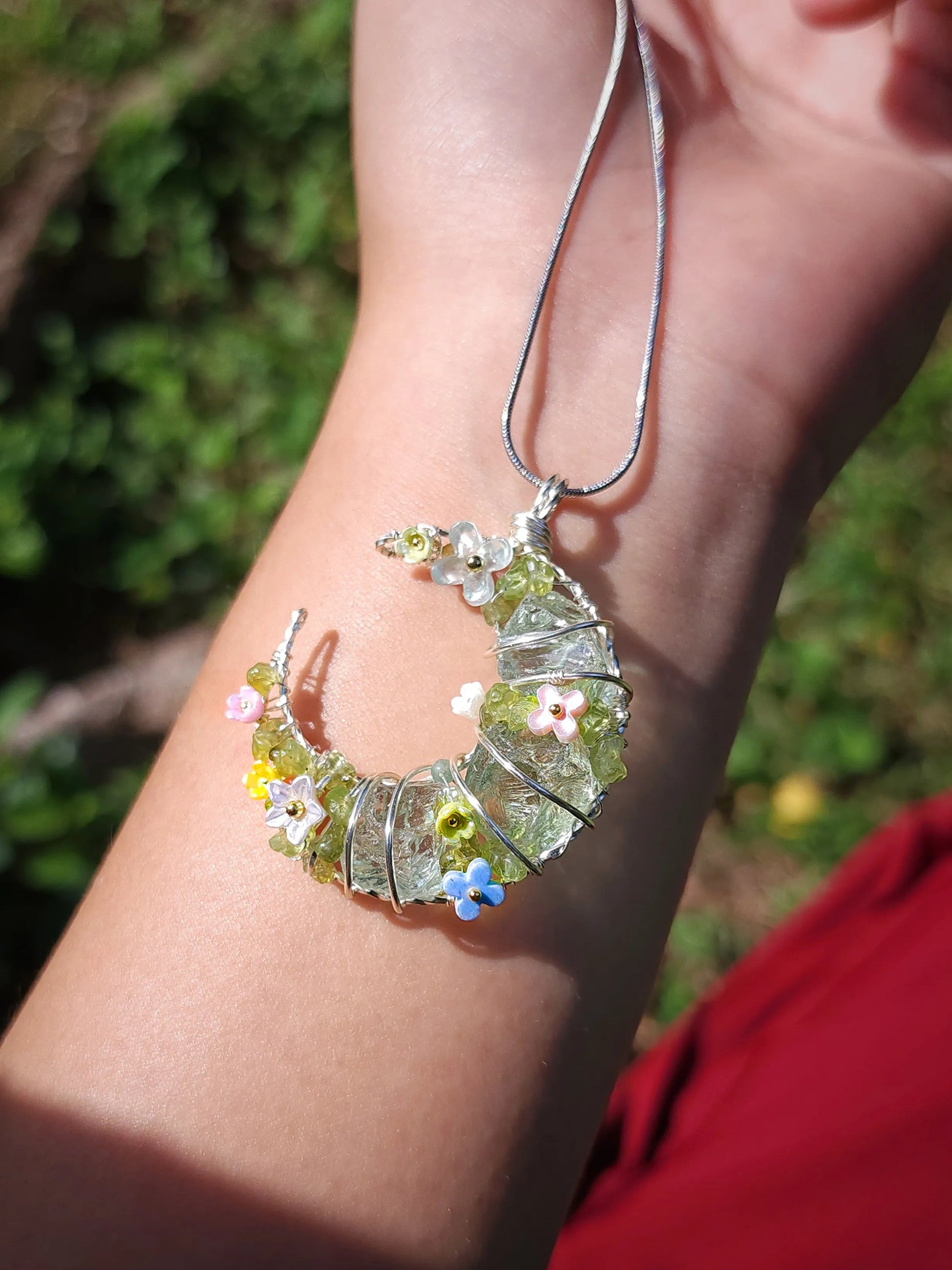 ✽Materials: green glass, Peridot, Color Retaining Copper Wire